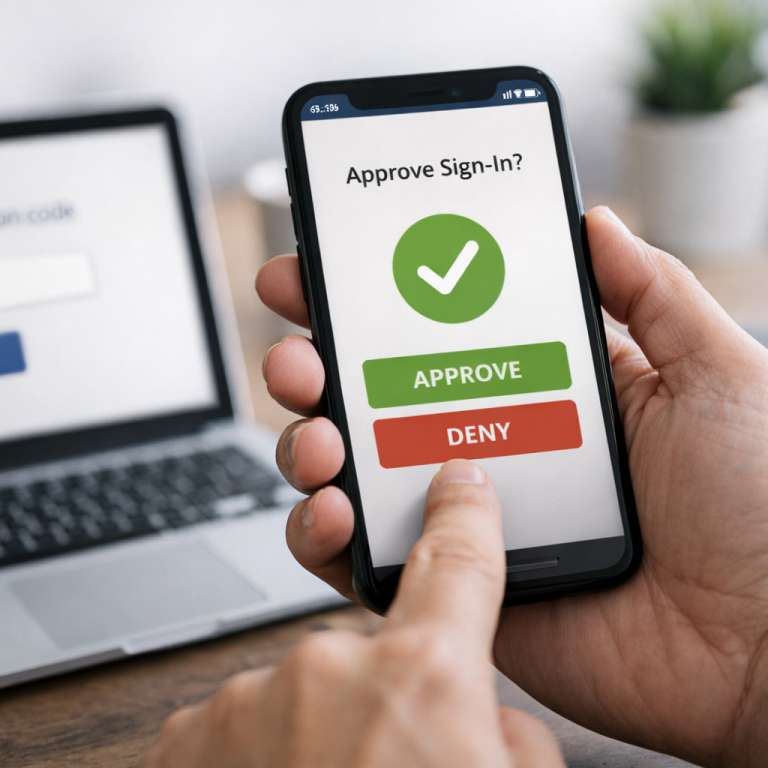 Wanneer je inlogt op een website of op een zakelijke computer, moet je de aanmelding bevestigen via je telefoon.